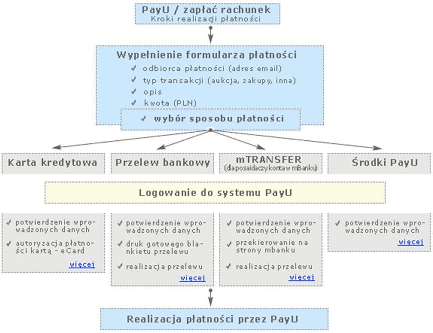 Za pośrednictwem serwisu można przekazać pieniądze każdemu użytkownikowi Internetu w kraju znając jedynie jego adres e-mail. Mogą używać go także osoby spoza Polski. Osoby z zagranicy nie mają jednak możliwości wypłaty pieniędzy z PayU poza granice Polski. Zgromadzone środki mogą wykorzystać tylko do płatności na rzecz innych użytkowników (np. na opłacenie prowizji Allegro) lub wypłacić je do banku w Polsce. Z PayU korzysta serwis aukcyjny oraz wiele sklepów internetowych.